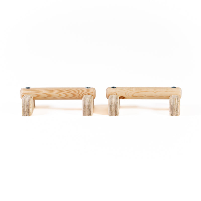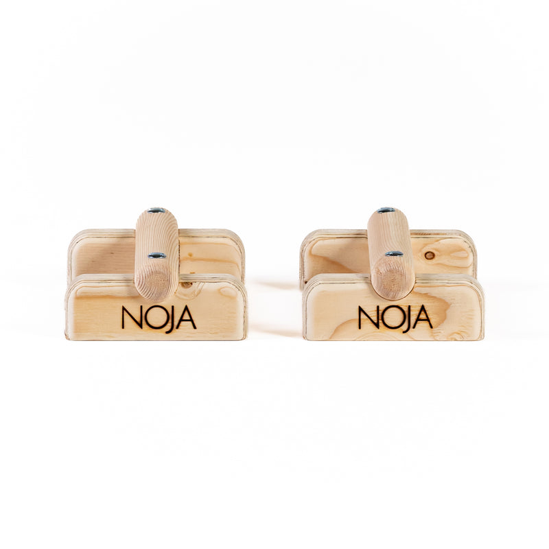 Pienet puiset punnerruskahvat - nojapuut (parallettes) käsilläseisonnan, erillaisten noja liikkeiden ja muiden haastavien kehonpainoliikkeiden harjoitteluun. Sopii mainiosti esimerkiksi seuraaviin liikkeisiin: erillaiset käsilläseisonta- ja punnerrus liikkeet, L-sit, Press-to-handstand, planche ym.