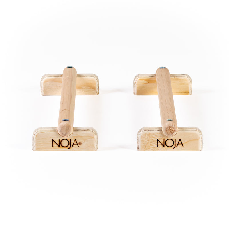 Puiset punnerruskahvat - nojapuut (parallettes) käsilläseisonnan, erillaisten noja liikkeiden ja muiden haastavien kehonpainoliikkeiden harjoitteluun. Sopii mainiosti esimerkiksi seuraaviin liikkeisiin: erillaiset käsilläseisonta- ja punnerrus liikkeet, L-sit, Press-to-handstand, planche ym.